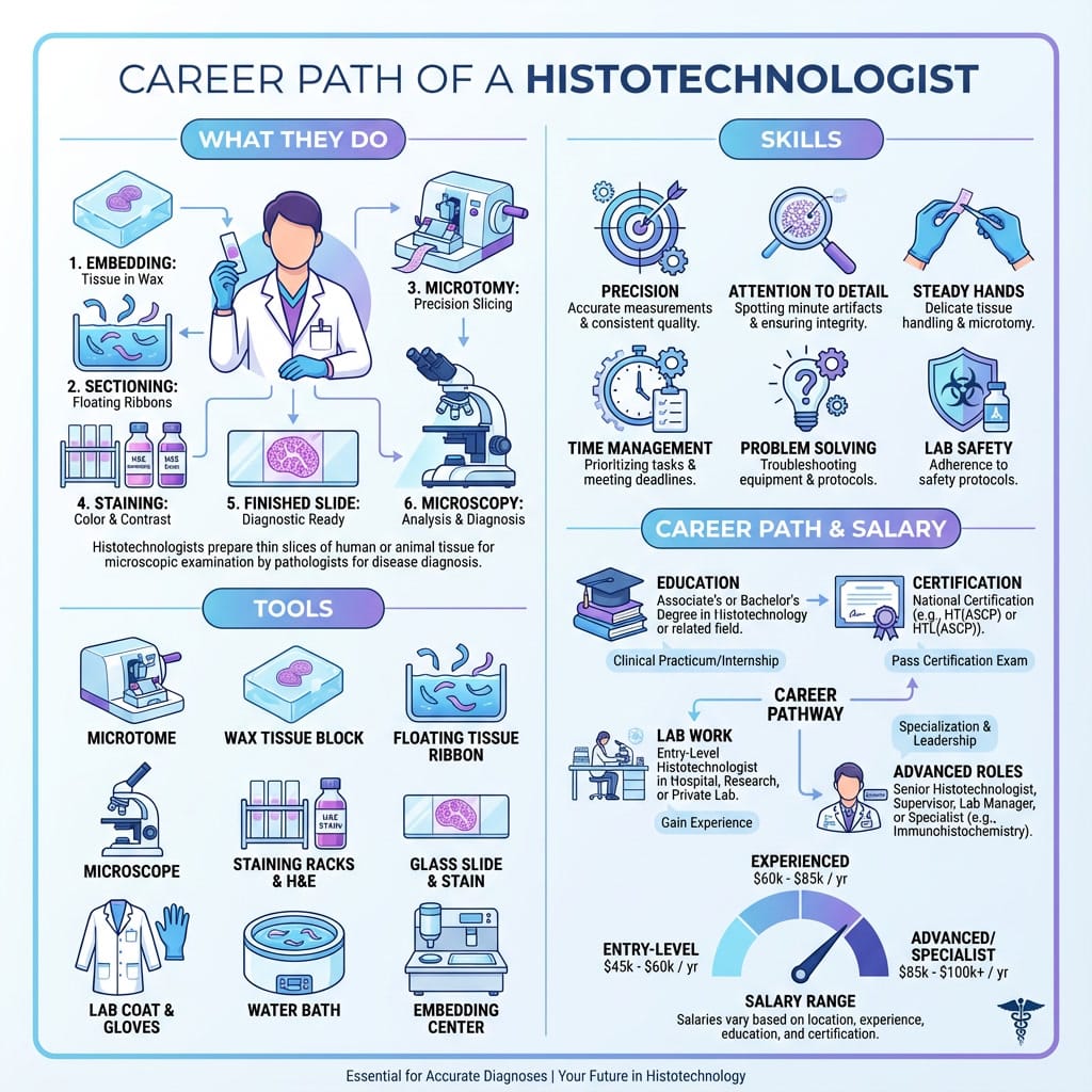 Career Path of a Histotechnologist Infographic Last updated on 14 Feb 2026 Previous The Simp Trap Next AI in Histotechnology Infographic