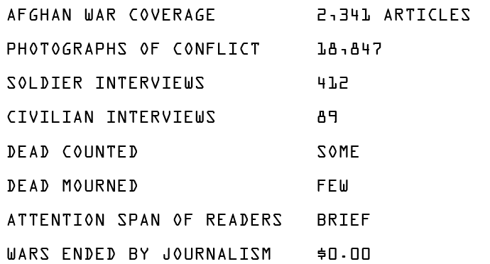 She’d won an award for her Afghanistan reporting. Three months embedded with troops. Gripping narratives. Powerful photography. The editor had called it “essential reading.”