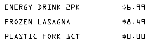 Mei looked at all the other $0.00 items on the receipt. There were so many of them. Way more than she could count.